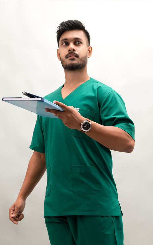 Mens V neck 5 pocket ( bottle green ) scrubs