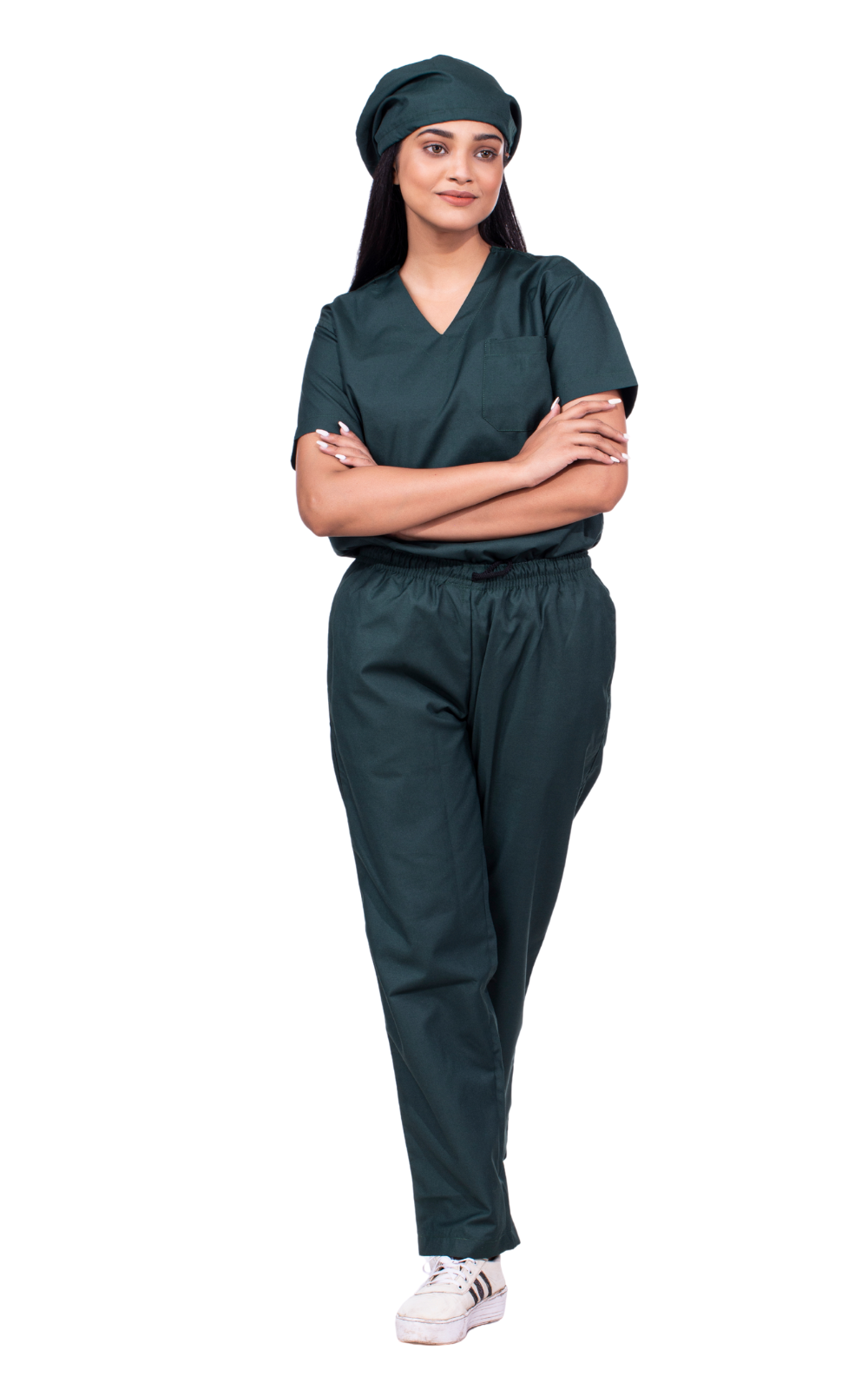 Say hi to new gen premium V neck upgraded bottle green scrubs, we call it a perfect match since it's wrinkle free, soft and comfortable and meets your daily requirement of long term shifts !! It is lab tested, engineered, and very much easy to wash